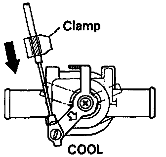 b. Set the water valve lever to "COOL", install the control cable and lock the clamp.