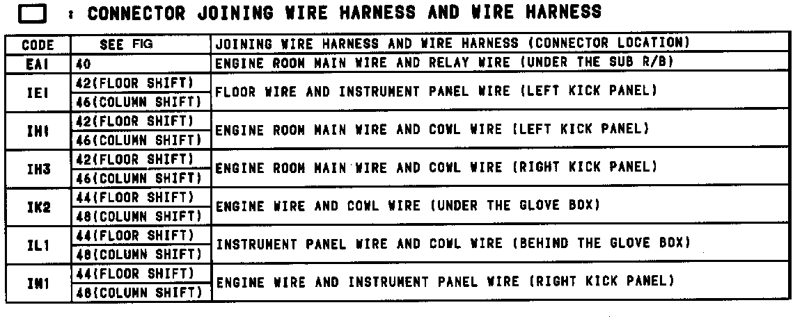 Location Of Connector Joining Wire Harness And Wire Harness (Floor Shift) (Fig 42):