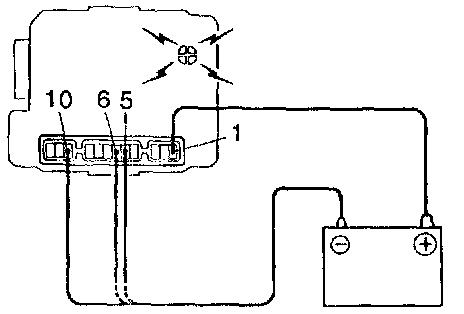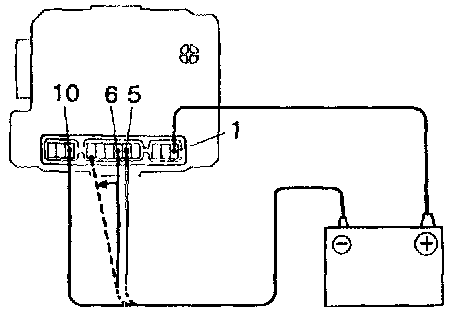 b. Connect the negative (-) lead from the battery to terminal 5, 6 and 10.