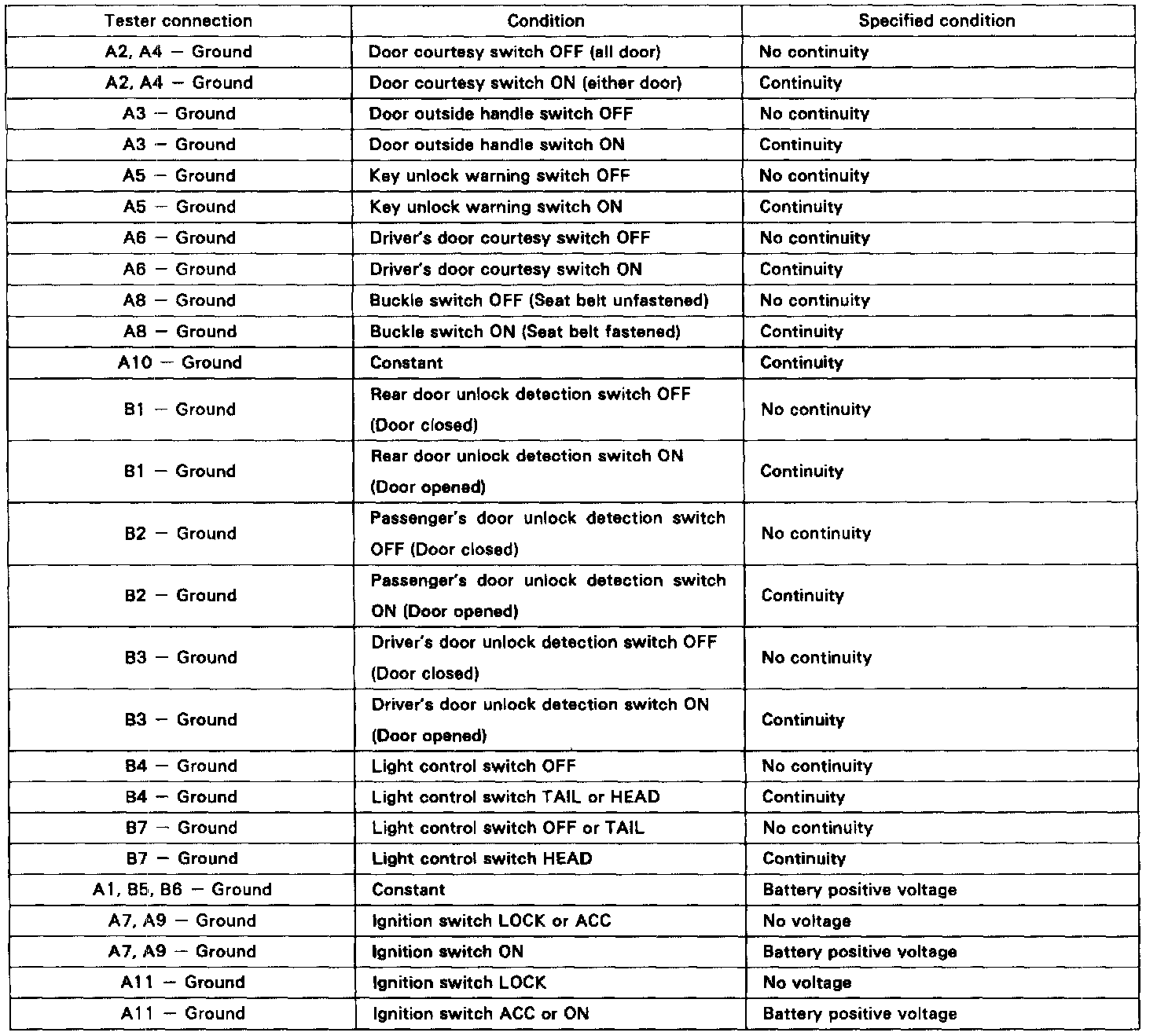 KEY UNLOCK WARNING SYSTEM INSPECTION