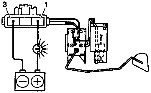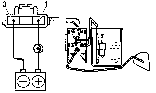 INSPECT FUEL LEVEL SWITCH OPERATION1. Apply battery positive voltage between terminals 1 and 3 through a 3.4 W test bulb, check that the bulb lights up.