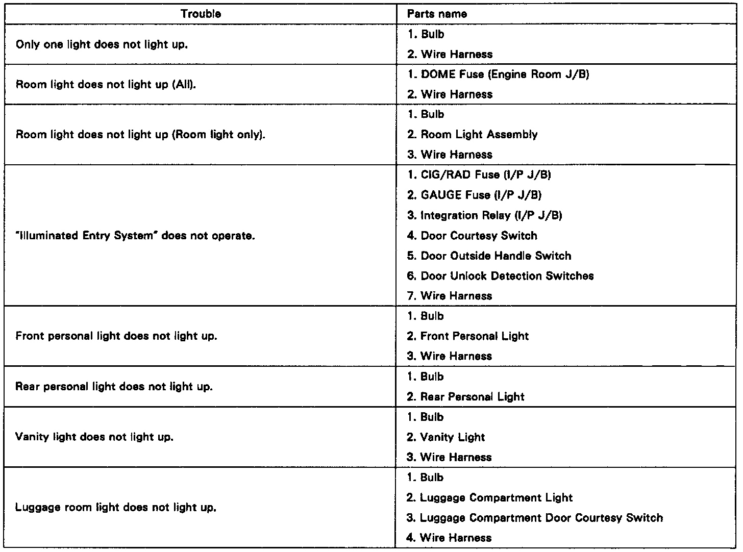 Troubleshooting / Interior Light System: