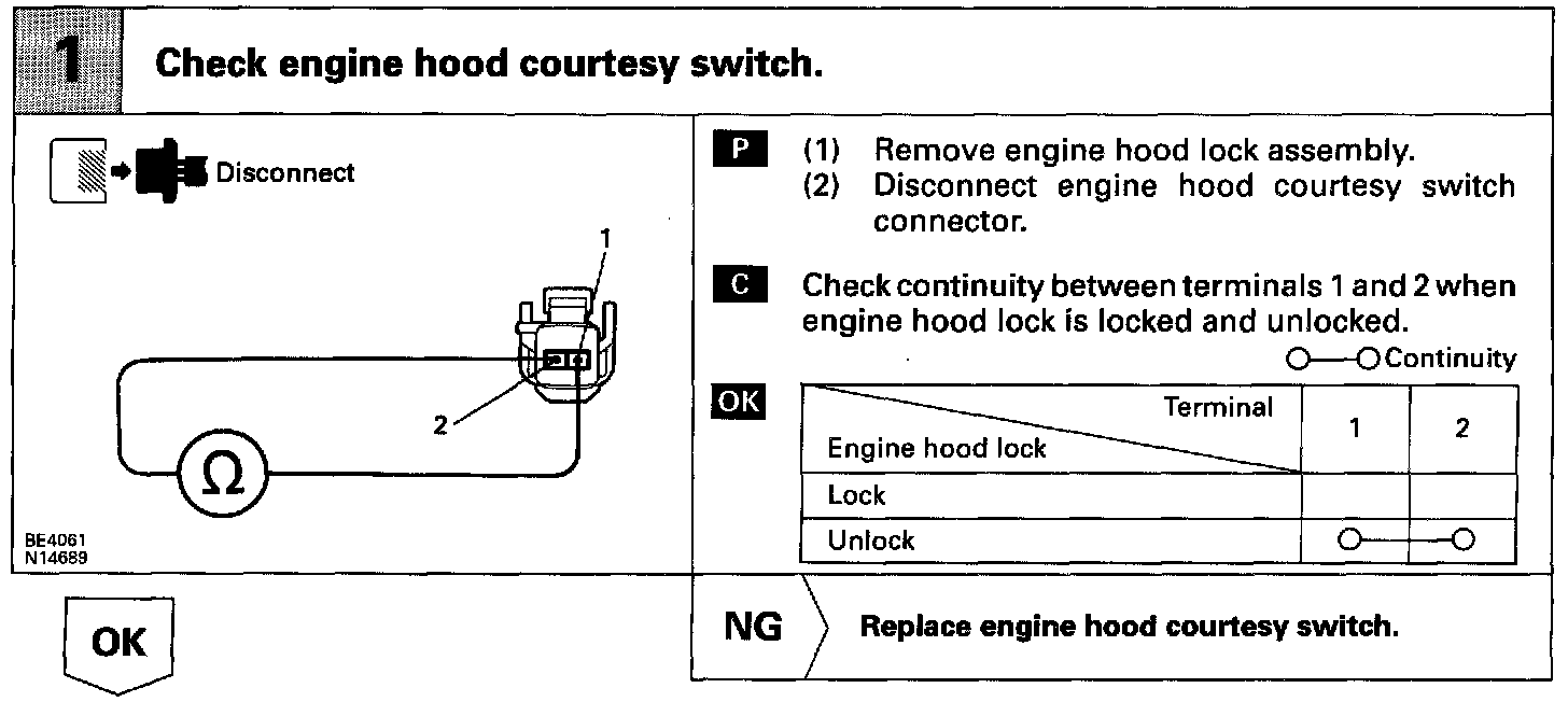 Inspection Procedure / Engine Hood Courtesy Switch Circuit (1 Of 2):