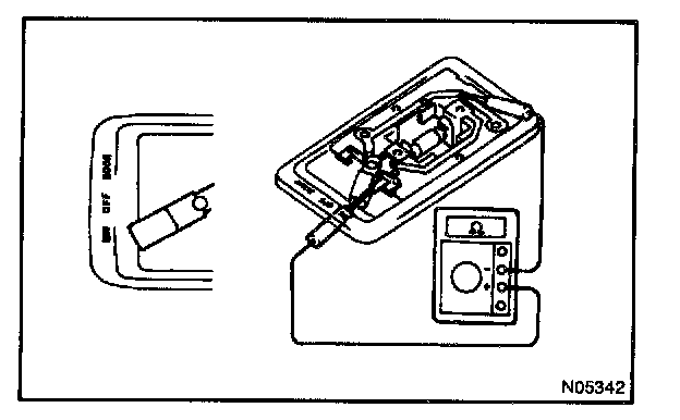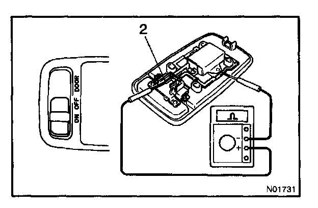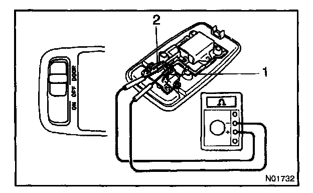 3. Turn the room light switch DOOR, check that there is continuity between terminal 1 and 2.