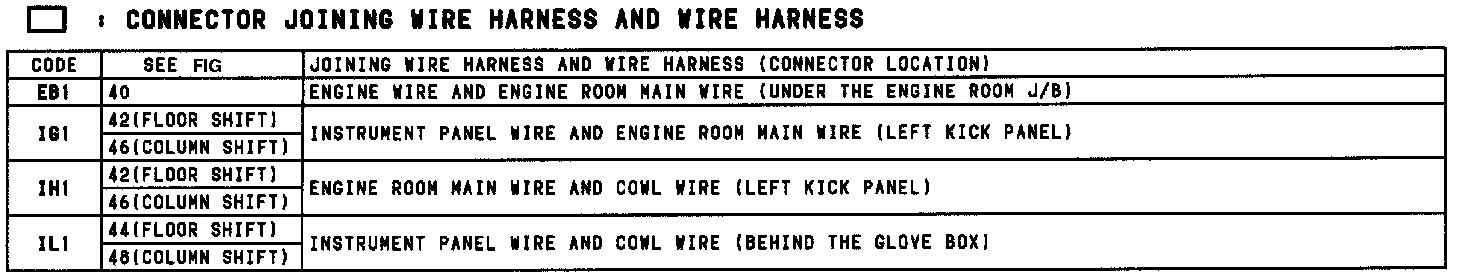 Location Of Connector Joining Wire Harness And Wire Harness (Floor Shift) (Fig 42):
