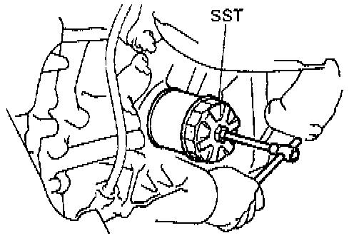 (a) Using Special Service Tool (SST) Oil Filter Wrench # 09228 - 07501 or equivalent, remove the oil filter.