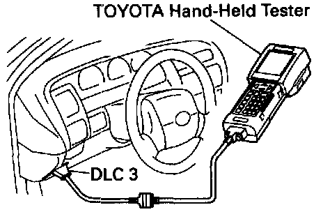 To check DTC, connect the OBDII scan tool or TOYOTA hand-held tester to Data Link Connector 3 (DLC3) on the vehicle. The OBDII scan tool or TOYOTA hand-held tester also enables you to erase the DTC and check freeze frame data and various forms of engine data. (For operating instructions, see the OBDII scan tool's instruction book.)