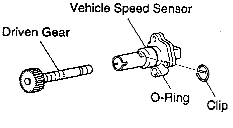 b. Remove the clip and speedometer driven gear from the vehicle speed sensor.