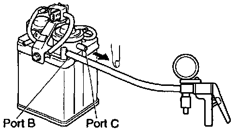 (d) Apply vacuum (3.43 kPa, 25.7 mmHg, 1.01 in.Hg) to port B, check that the vacuum does not decrease when port C is closed, and check that the vacuum decreases when port C is released.