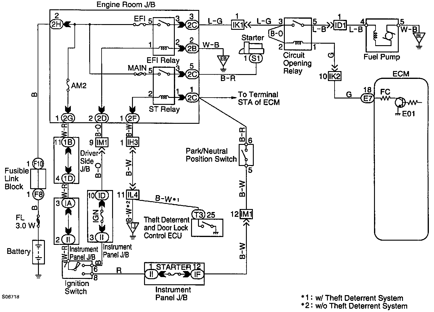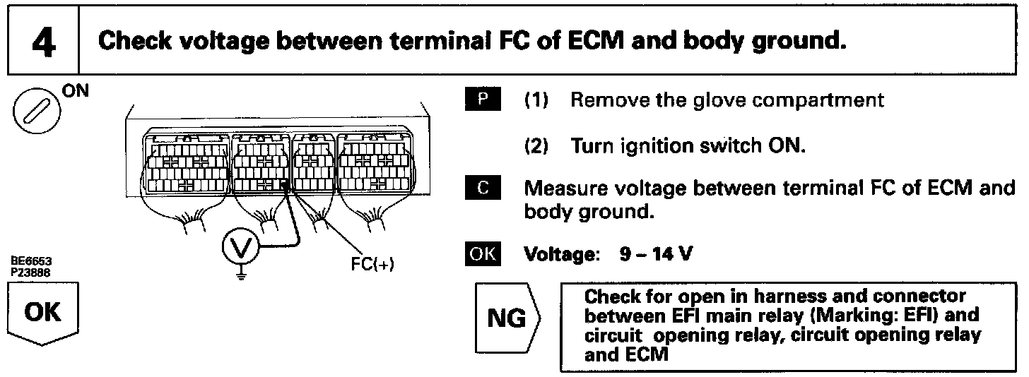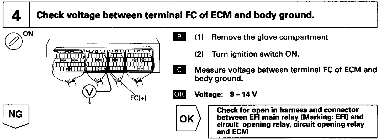 In the diagram above, when the engine is cranked, current flows from terminal ST of the ignition switch to the starter relay coil and also current flows to terminal STA of ECM (STA signal).