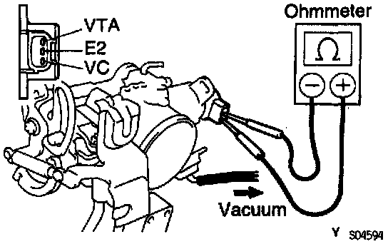 (b) Check that there is no clearance between the throttle stop screw and throttle lever when the throttle valve is fully closed.