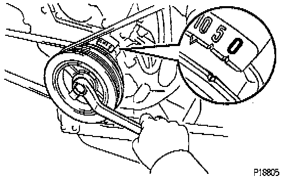 (a) Turn the crankshaft pulley, and align its groove with the timing mark "0" of the No. 1 timing belt cover.