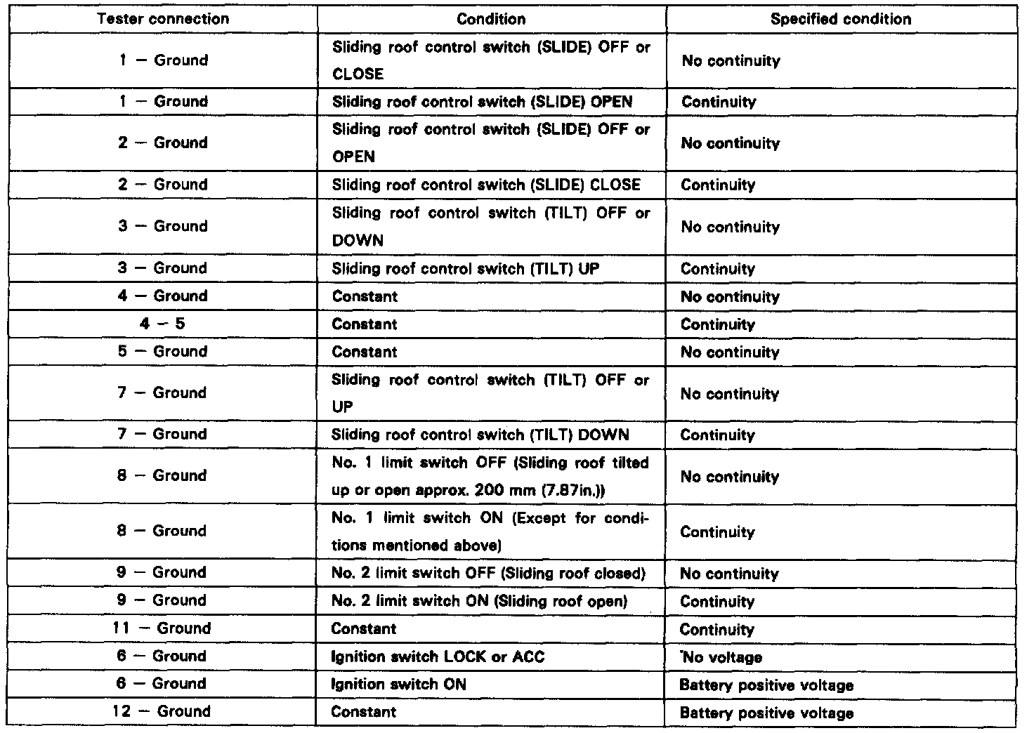 INSPECT SLIDING ROOF CONTROL RELAY CIRCUIT