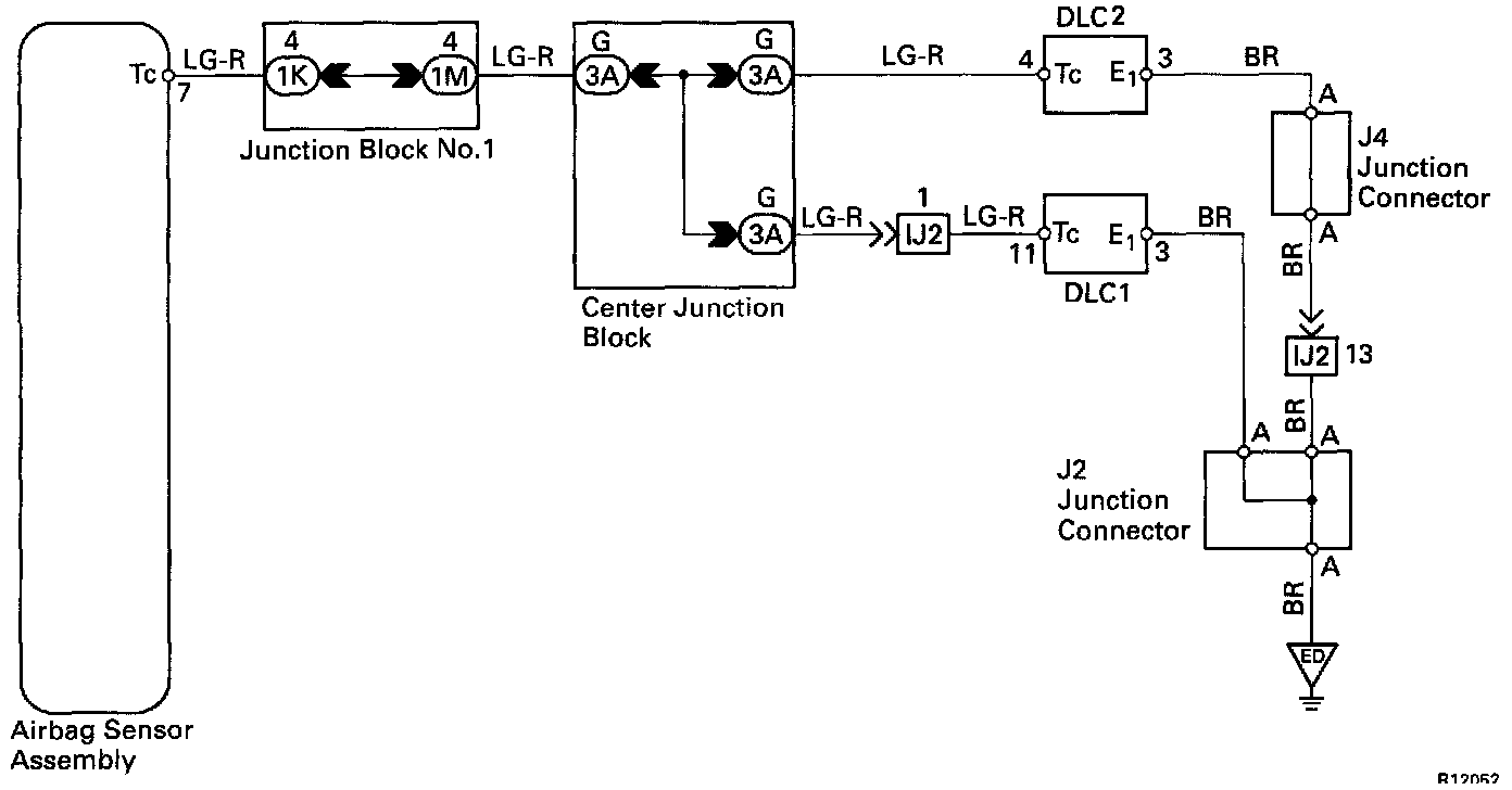 CIRCUIT DESCRIPTIONBy connecting terminals Tc and E1 of the DLC1 the side airbag sensor assembly is set in the DTC output mode. The DTCs are displayed by the blinking of the SRS side airbag warning light.