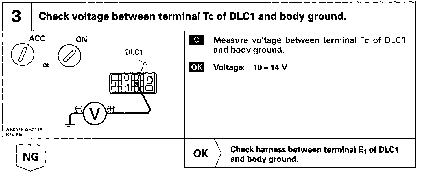 3. Check Voltage Between Terminals Tc Of DLC1 And Body Ground