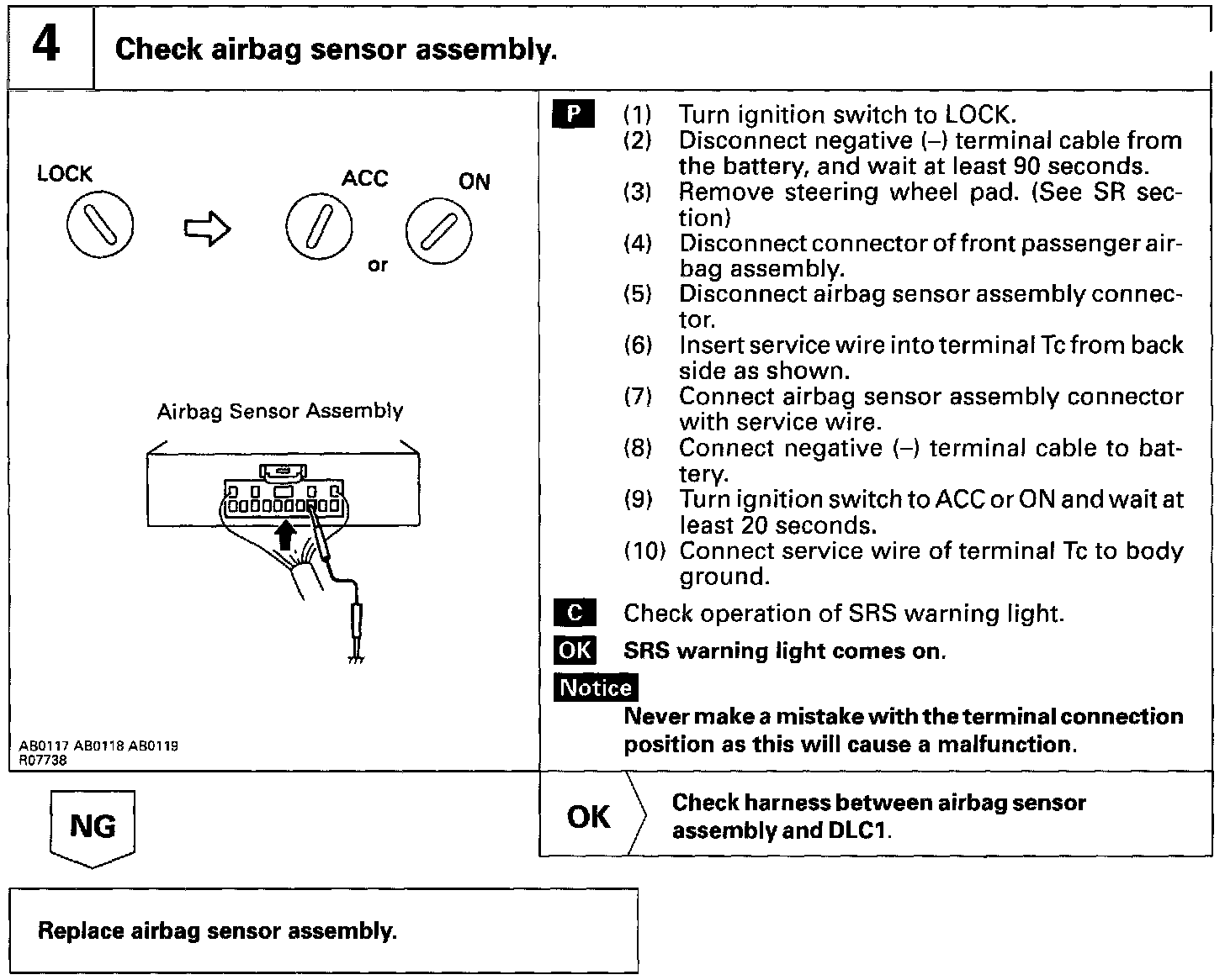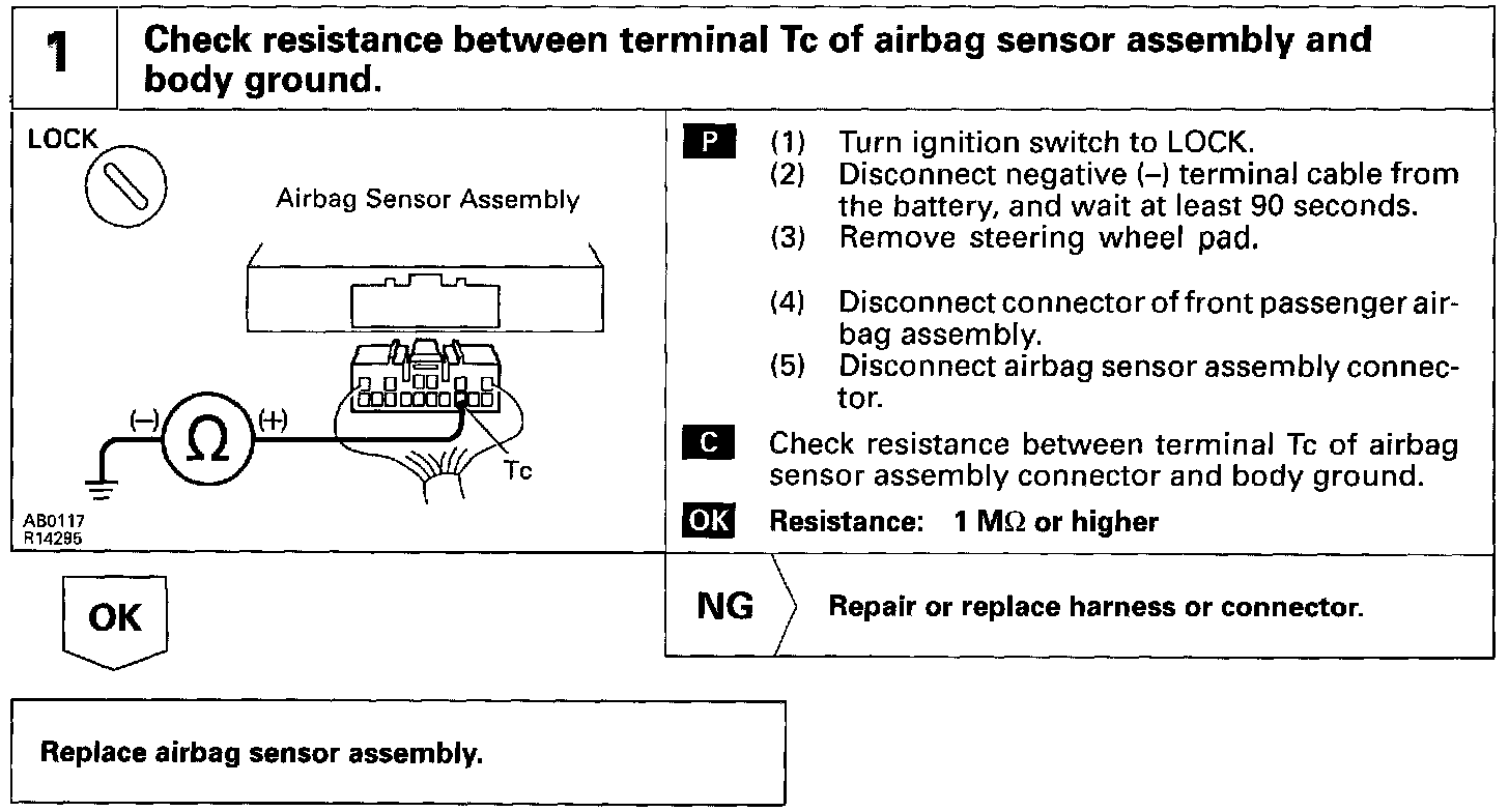1. Check Resistance Between Terminal Tc Of Airbag Sensor Assembly And Body Ground