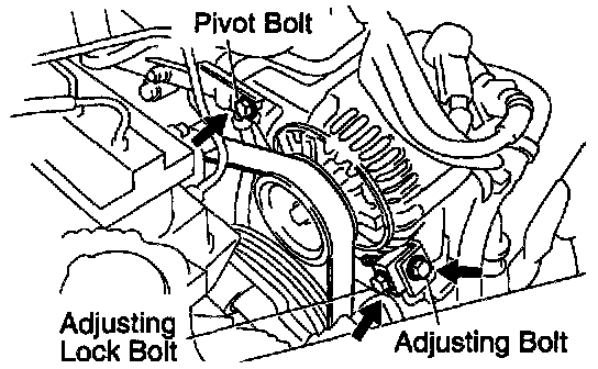Loosen the pivot bolt, adjusting lock bolt and adjusting bolt, and remove the drive belt.