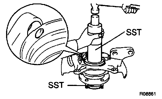 1. Remove steering knuckle with axle hub.