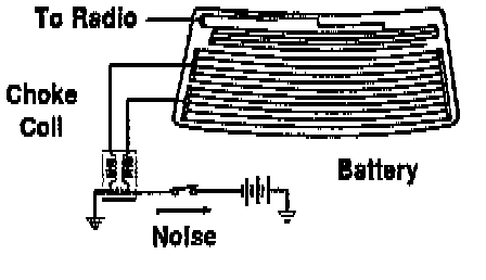 The proximity of the rear window defogger and the glass antenna imprints allows noise to transfer on to the antenna easily. A choke coil is connected to the rear window defogger circuit to eliminate the noise in this circuit.