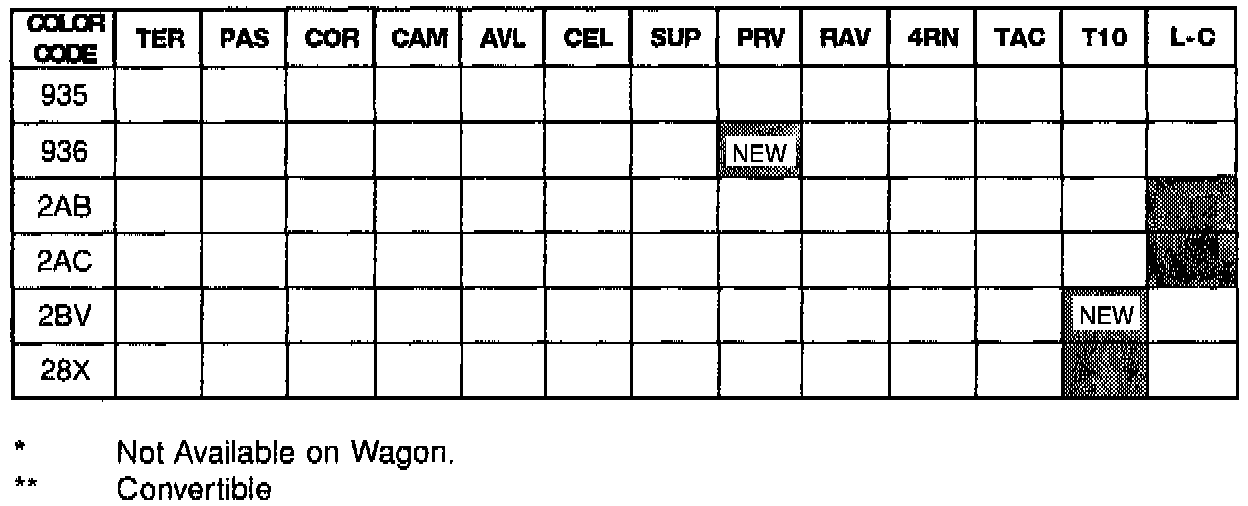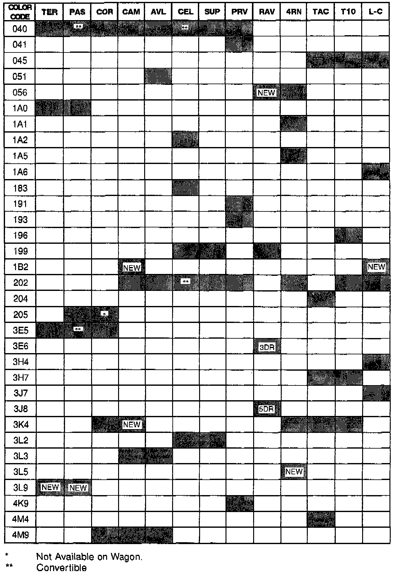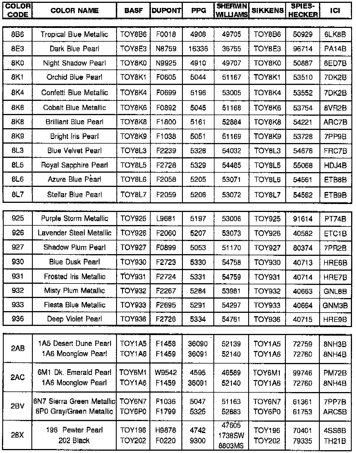 Included for your reference is a list of all 1997 OEM paint codes and refinish paint codes for the following refinish paint manufacturers: