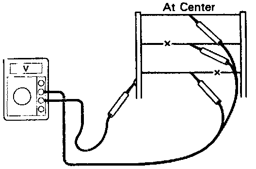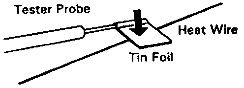 HINT: If the heat wire is not broken, the voltmeter indicates 0 V at the positive (+) end of the heat wire but gradually in creases to about 12 V as the meter probe is moved to the other end.