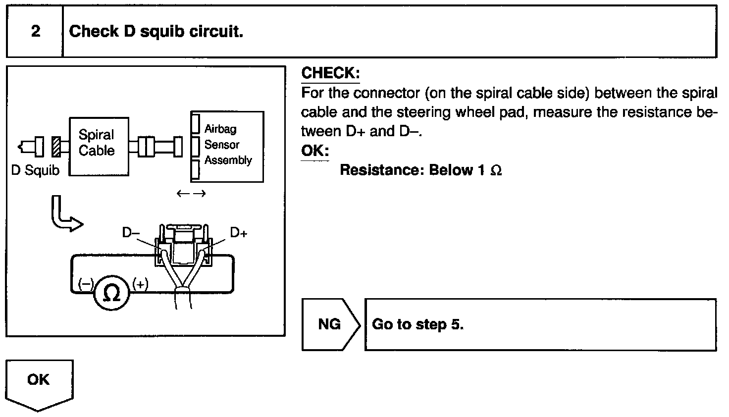 The D squib circuit consists of the airbag sensor assembly, spiral cable and steering wheel pad.