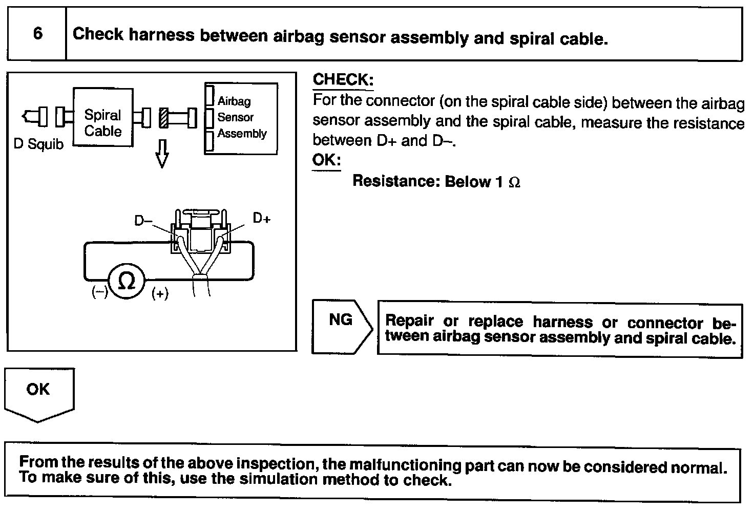 Step 6/Check harness between airbag sensor assembly and spiral cable