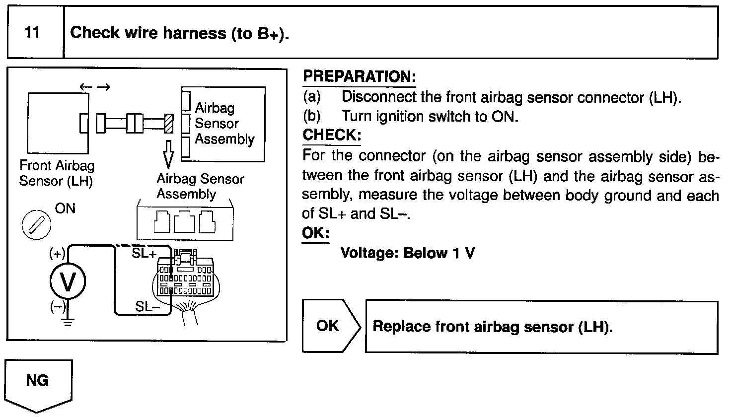 Step 4/Check front airbag sensor (LH) circuit (to B+)