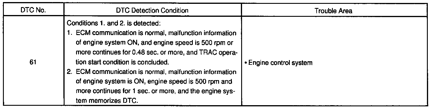If any trouble occurs in the engine control system, the ECU prohibits TRAC control.