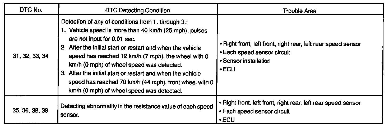 - DTC No.34 and 39 are for the left rear speed sensor.