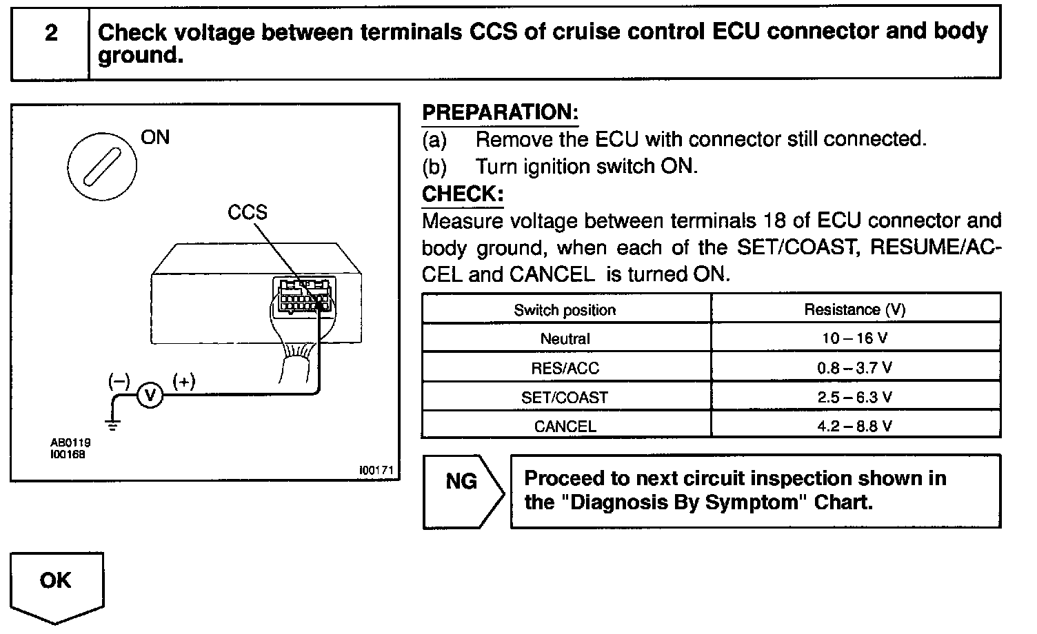 This circuit carries the SET/COAST, RESUME/ACCEL and CANCEL signals (each voltage) to the ECU.