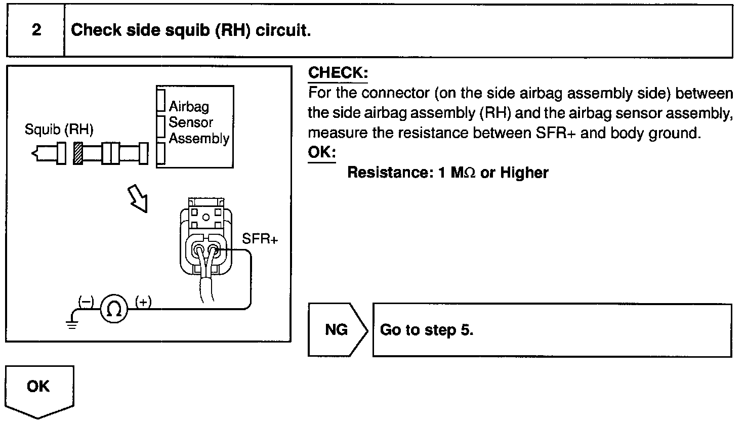Step 2/Check side squib (RH) circuit