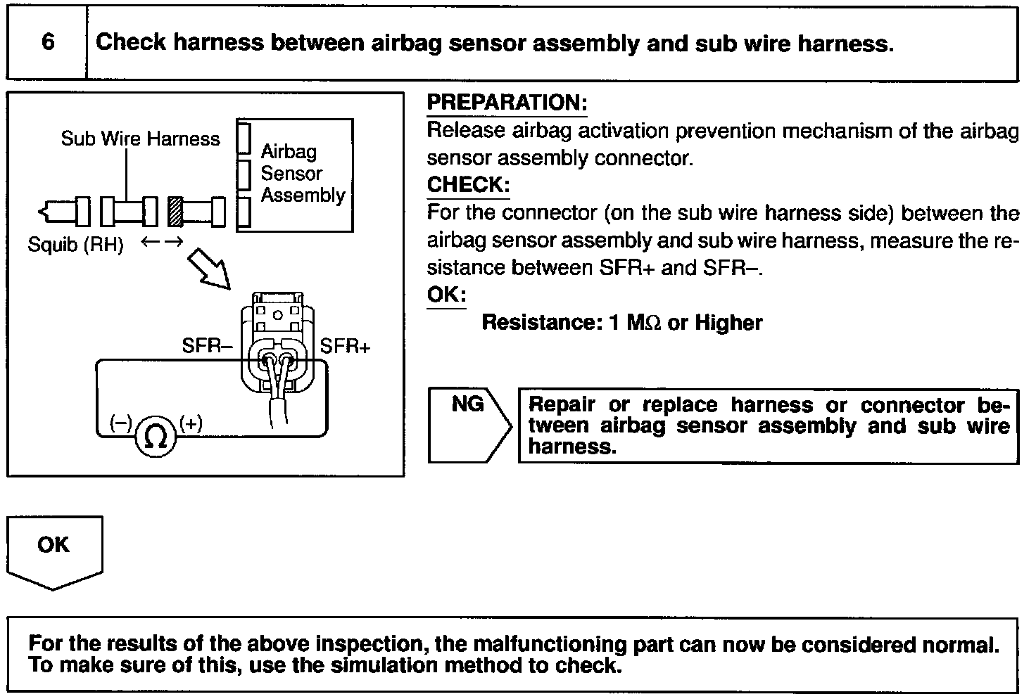 Step 6/Check harness between airbag sensor assembly and sub wire harness