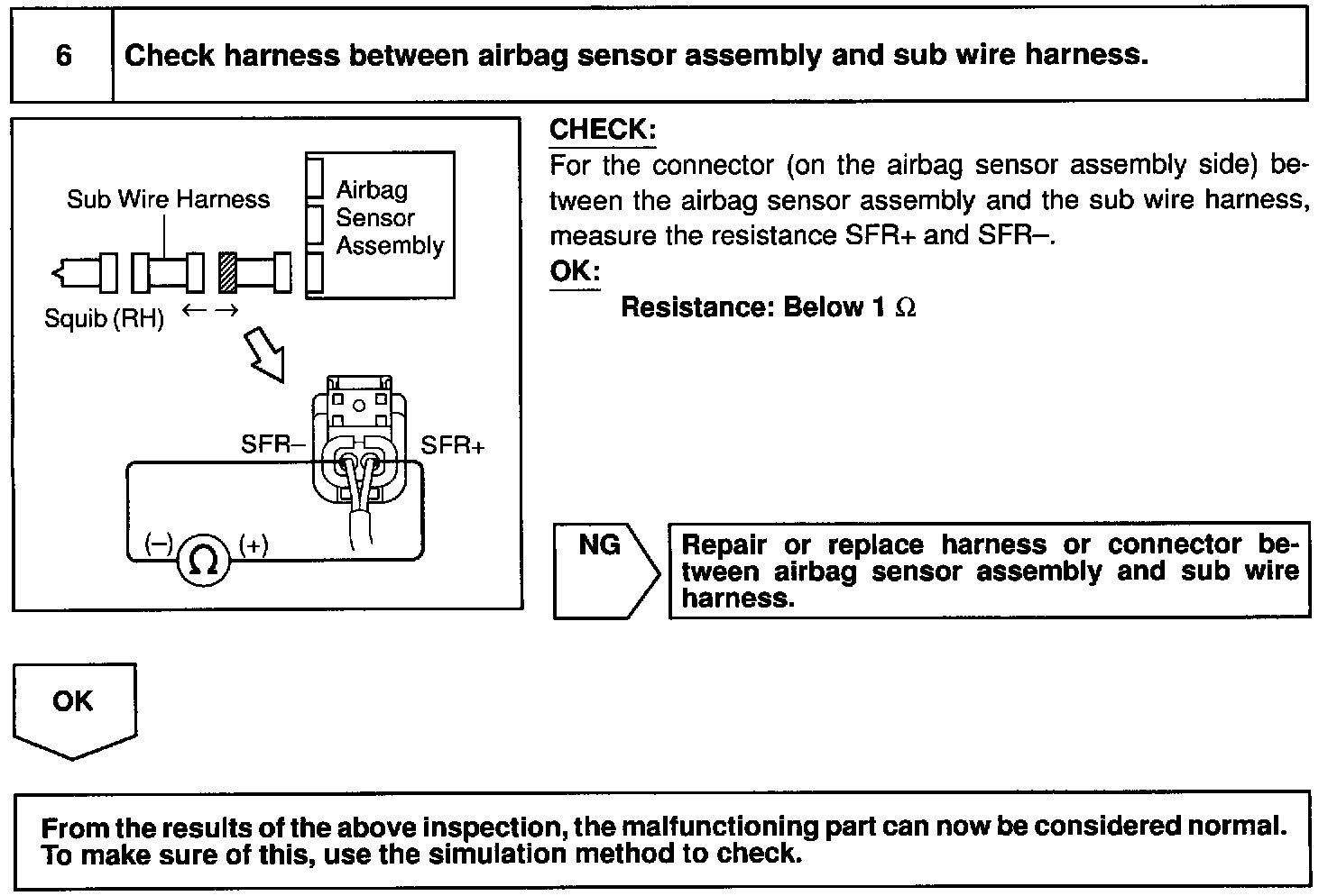 Step 6/Check harness between airbag sensor assembly and sub wire harness