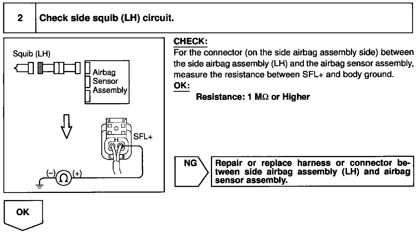 Step 2/Check side squib (LH) circuit