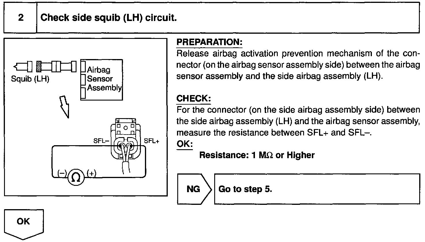 Step 6/Check harness between airbag sensor assembly and sub wire harness