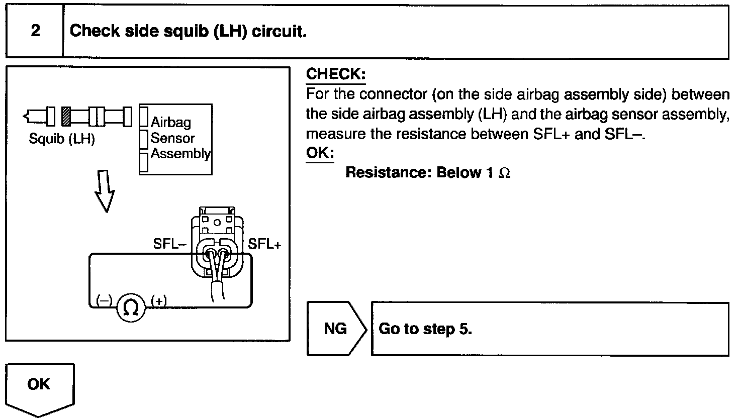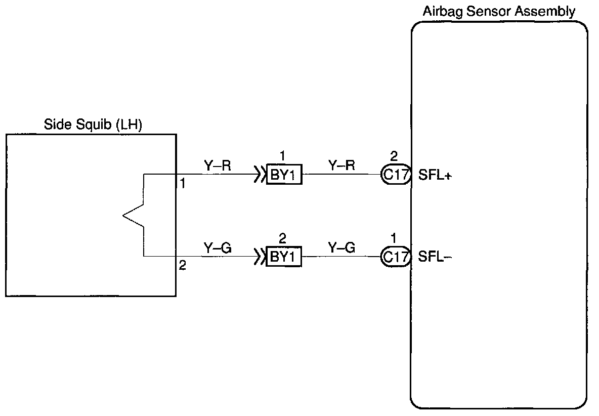 The side squib circuit consists of the airbag sensor assembly and side airbag assembly (LH).