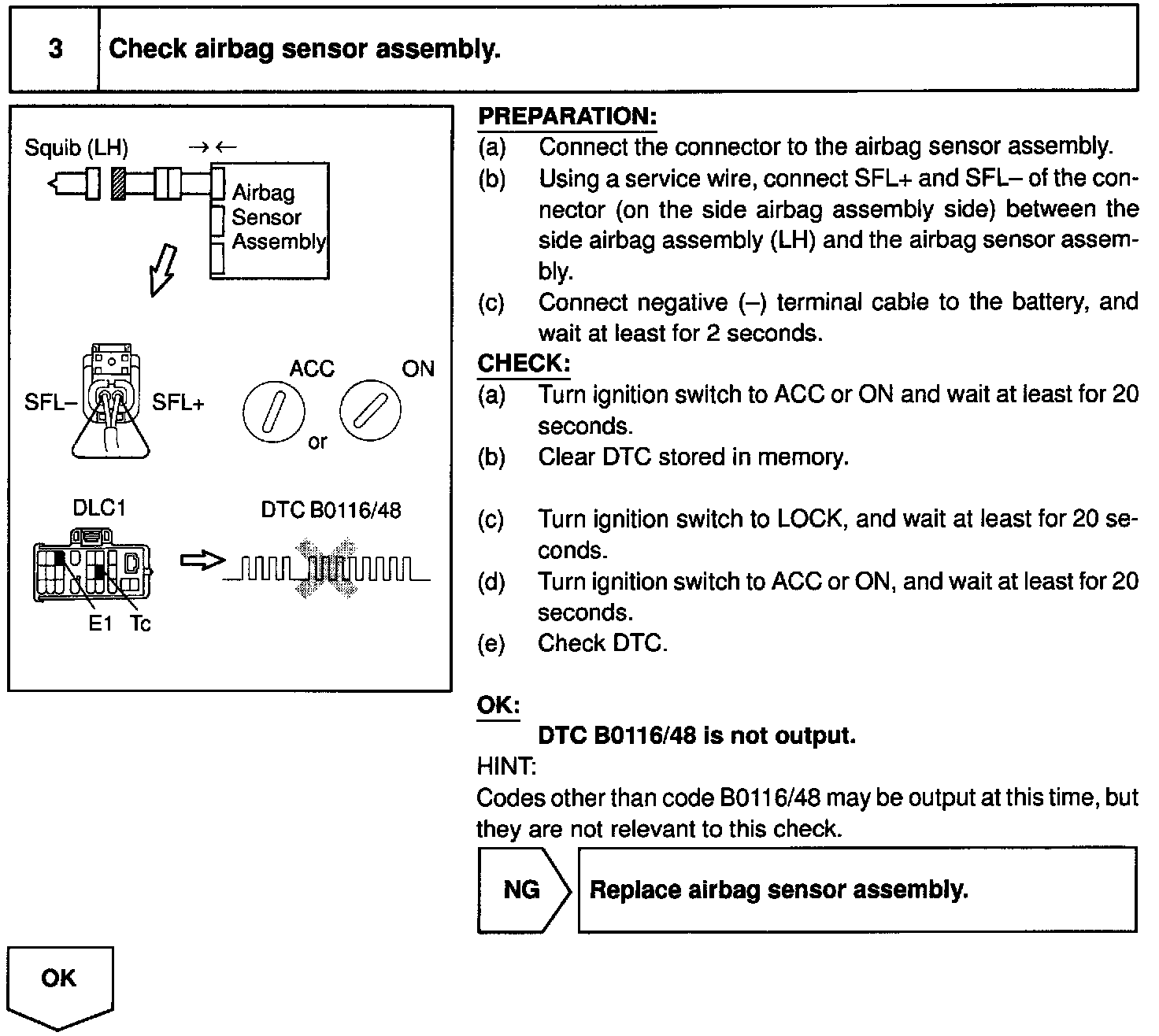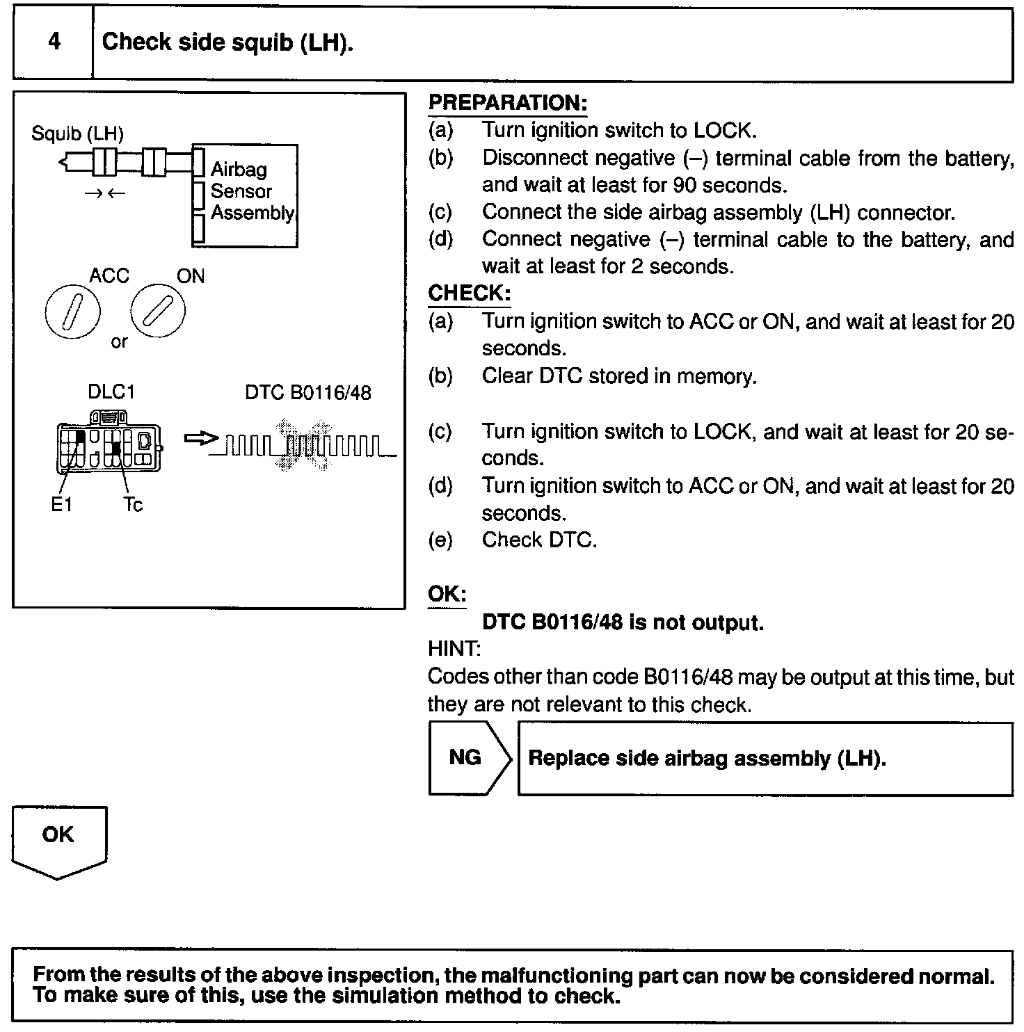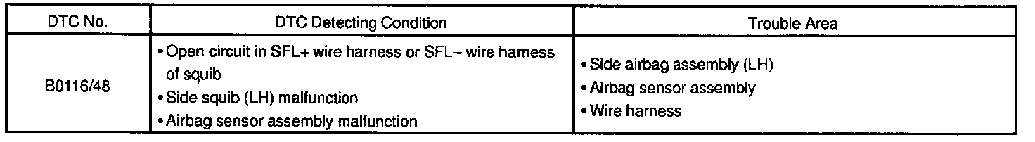 DTC B0116/48 is recorded when an open is detected in the side squib (LH) circuit.