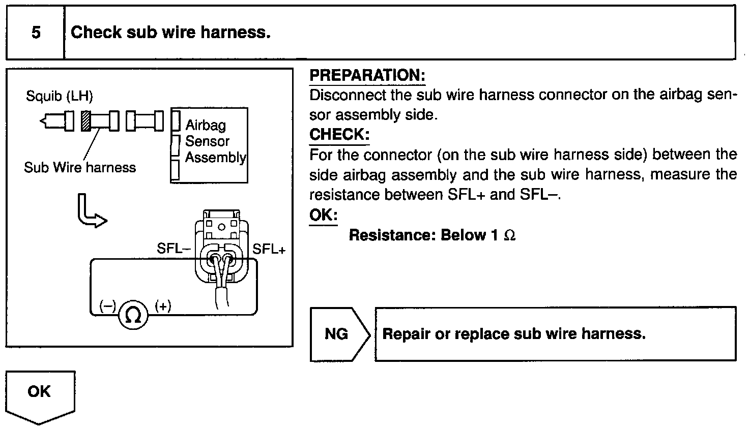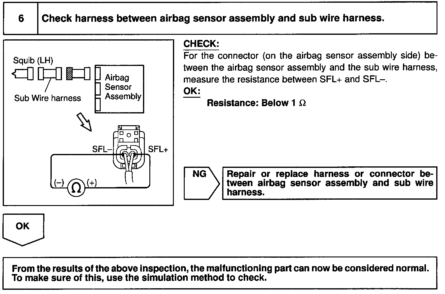 Step 6/Check harness between airbag sensor assembly and sub wire harness