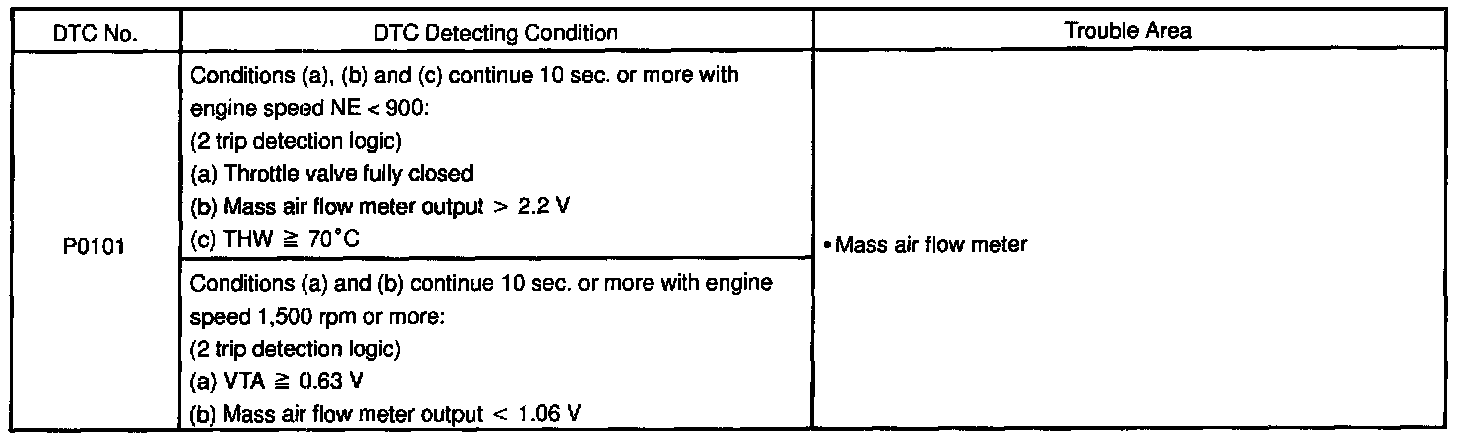DTC PO101 Mass Air Flow Circuit Range/Performance Problem