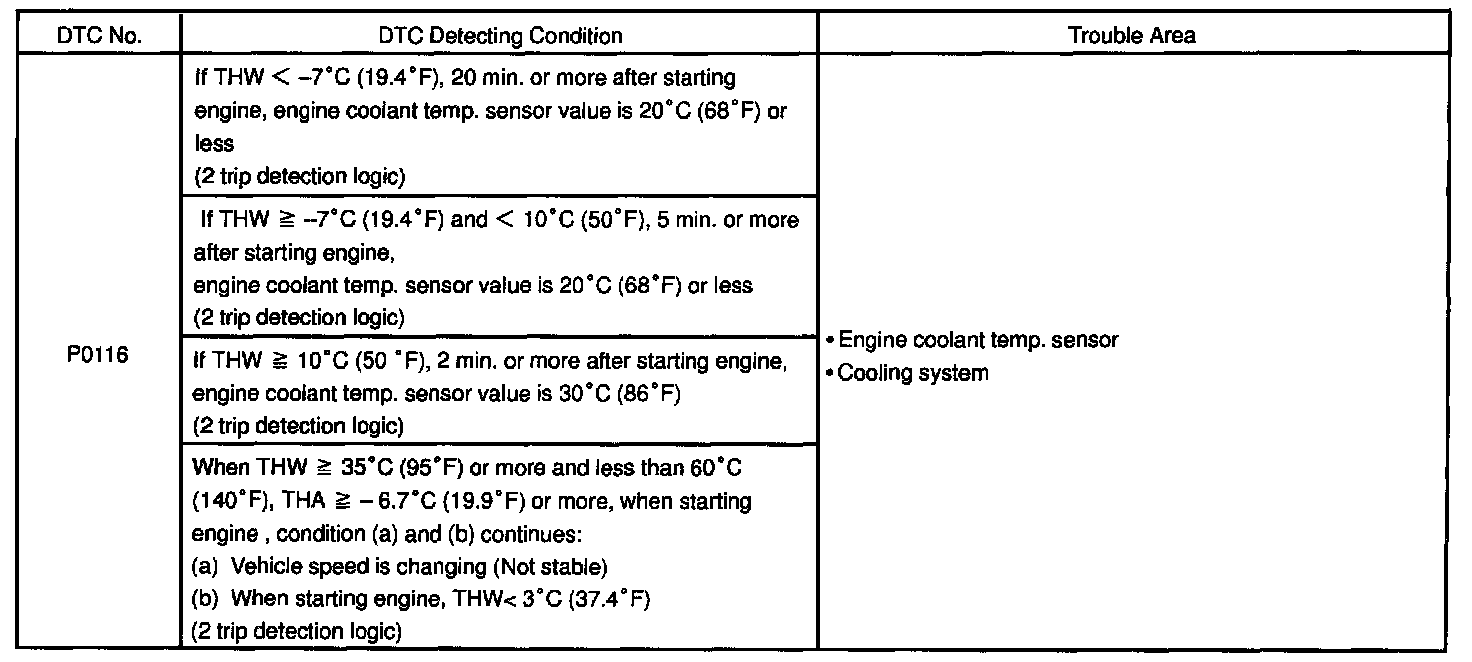 DTC P0116 - Engine Coolant Temperature Circuit Range / Performance Problem