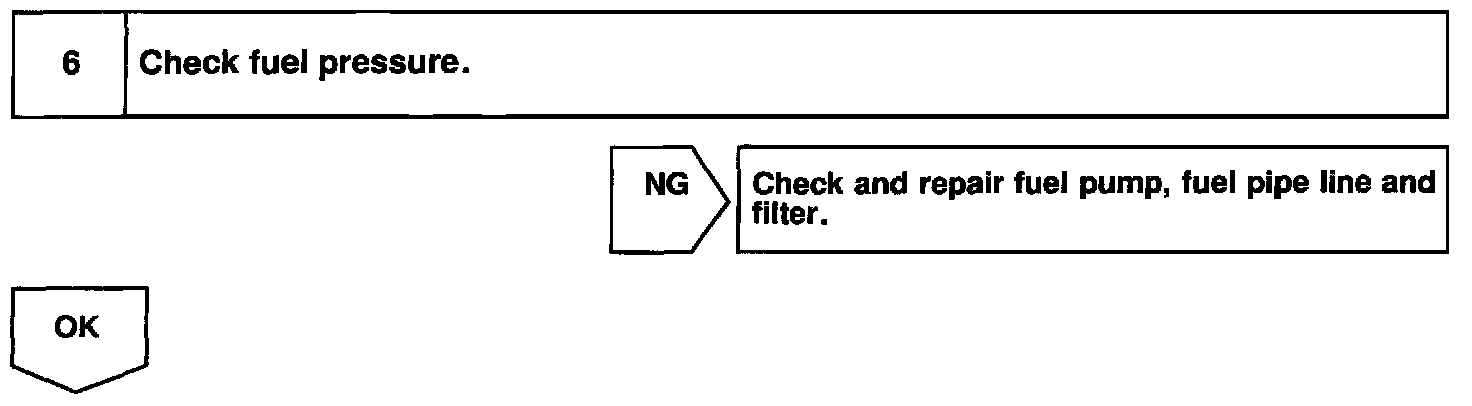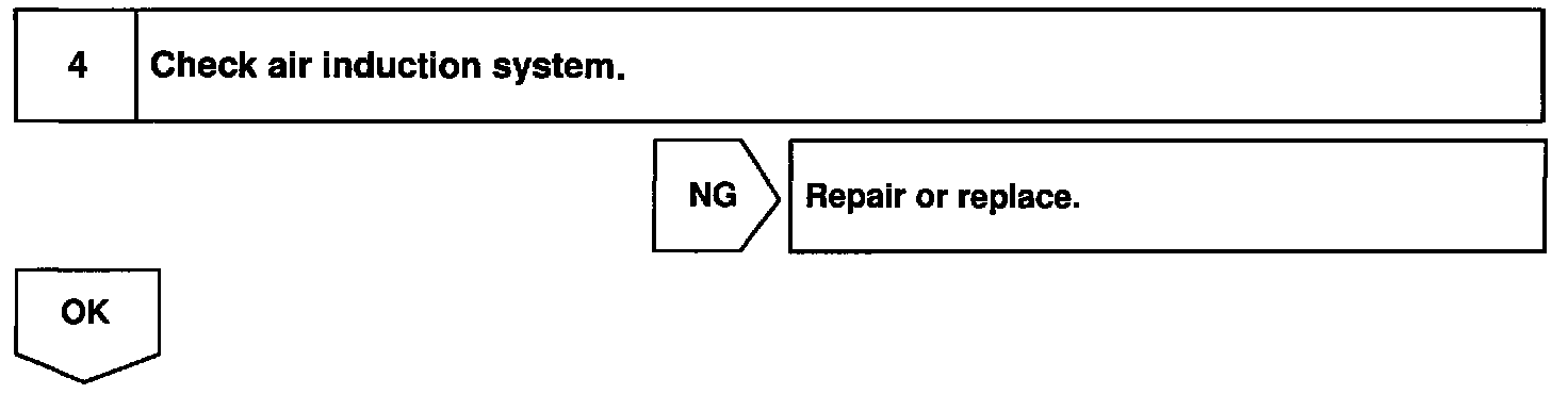 When the air-fuel ratio is RICHER than the stoichiometric air-fuel ratio the oxygen concentration in the exhaust gas is reduced and the oxygen sensor informs the ECM of the RICH condition (large electromotive force: > 0.45 V). The ECM judges by the electromotive force from the oxygen sensor whether the air-fuel ratio is RICH or LEAN and controls the injection time accordingly. However, if malfunction of the oxygen sensor causes output of abnormal electromotive force, the ECM is unable to perform accurate air-fuel ratio control.