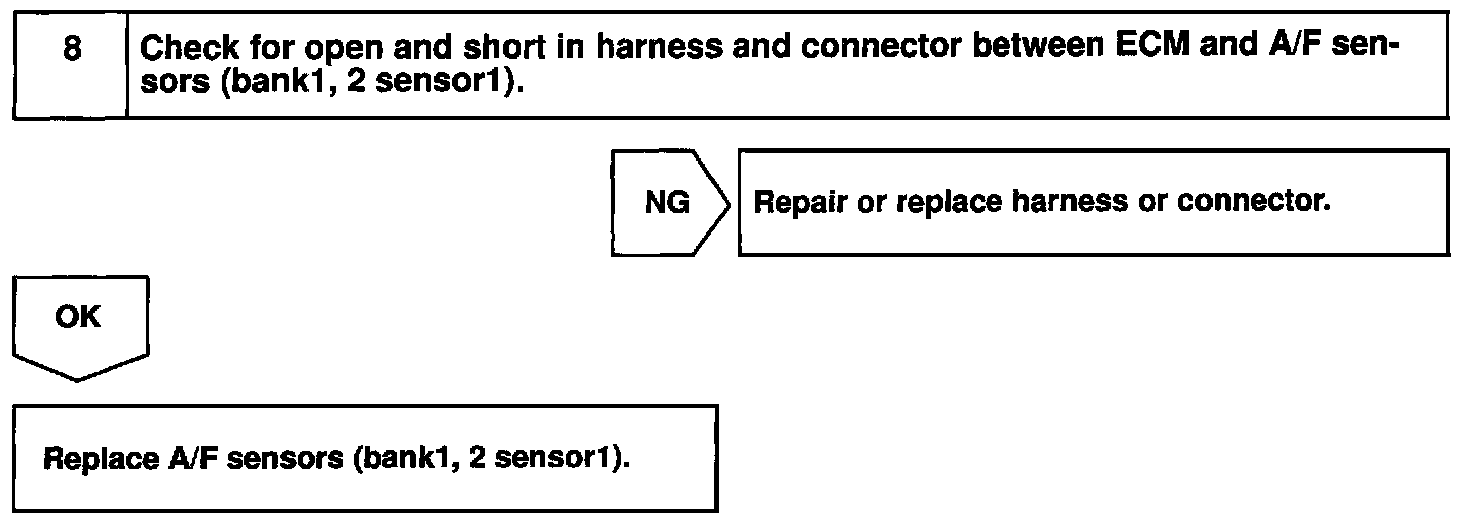 - The ECM controls the voltage of AF(+) and AF(-) terminals of ECM to the fixed voltage. Therefore, it is impossible to confirm the A/F sensor output voltage without OBD II scan tool or TOYOTA hand-held tester.