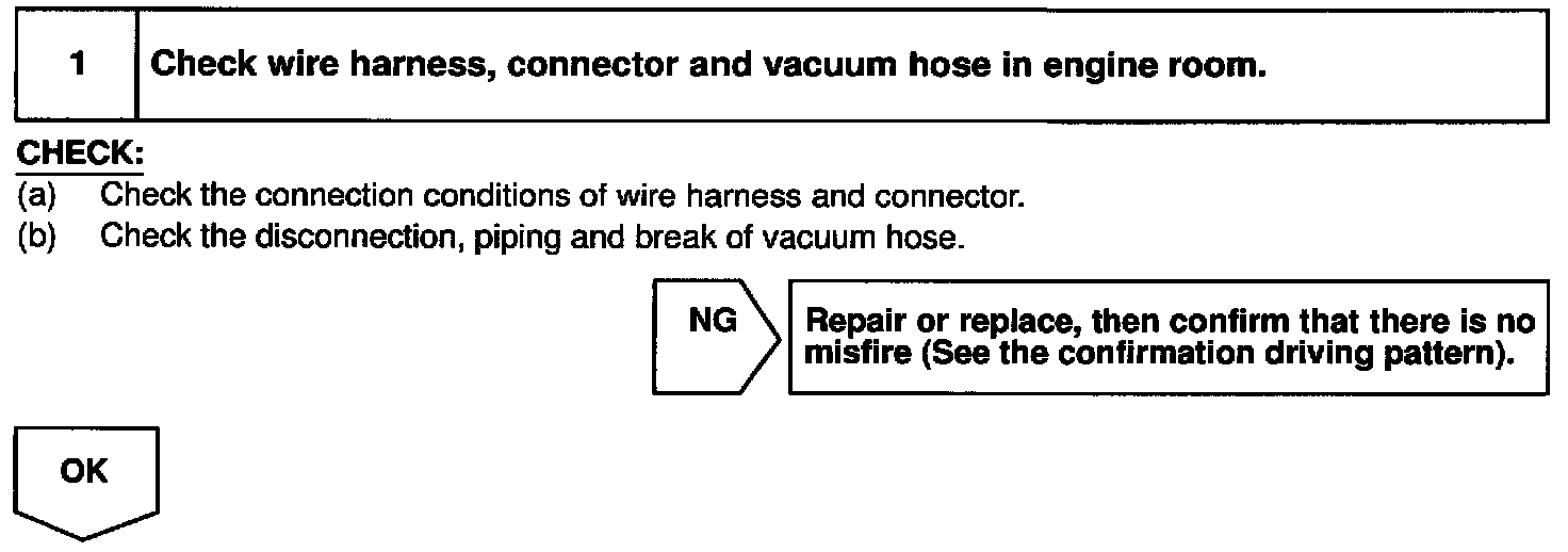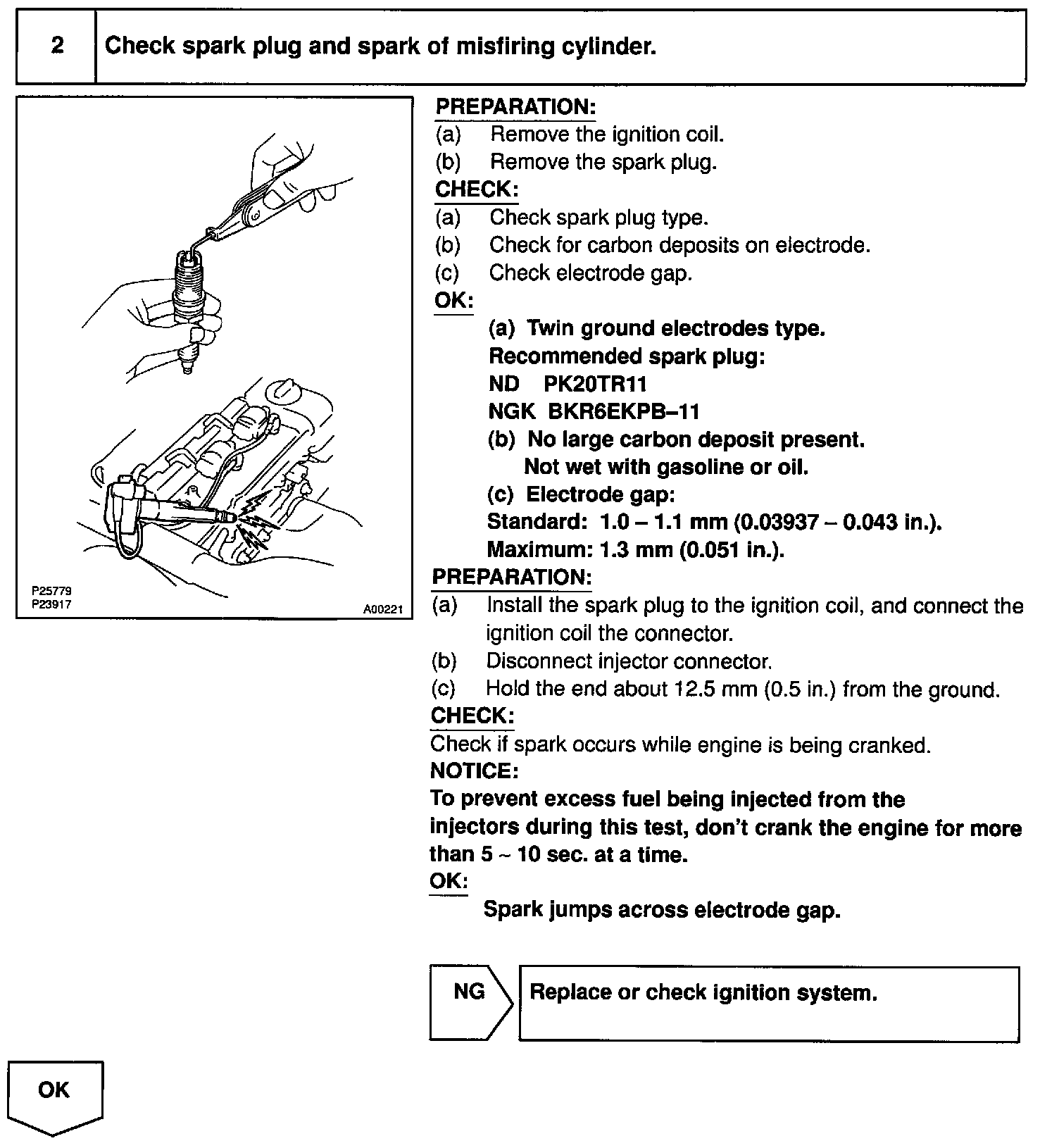 - In the case that misfire cannot be reproduced, the reason may be because of the driving with lack or fuel, the use of improper fuel, a stain of ignition plug, and etc.