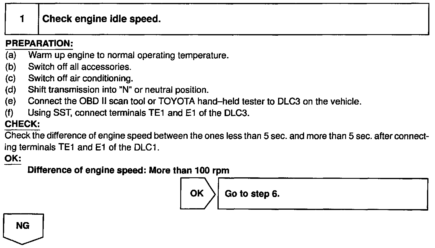 HINT: Read freeze frame data using TOYOTA hand-held tester or OBD II scan tool. Because freeze frame records the engine conditions when the malfunction is detected, when troubleshooting it is useful for determining whether the vehicle was running or stopped, the engine warmed up or not, the air-fuel ratio lean or rich, etc. at the time of the malfunction.