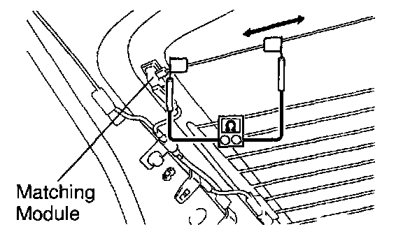 HINT: Matching module is built in the bus bar of the glass printed antenna (main terminal side) of AVALON and no continuity exists between the terminal and the antenna. Therefore, for the continuity checking of the glass printed antenna on the main antenna side of AVALON, place one probe of the tester on the position beside the bus bar (position shown in the illustration) and check by making the other probe of the tester move along.