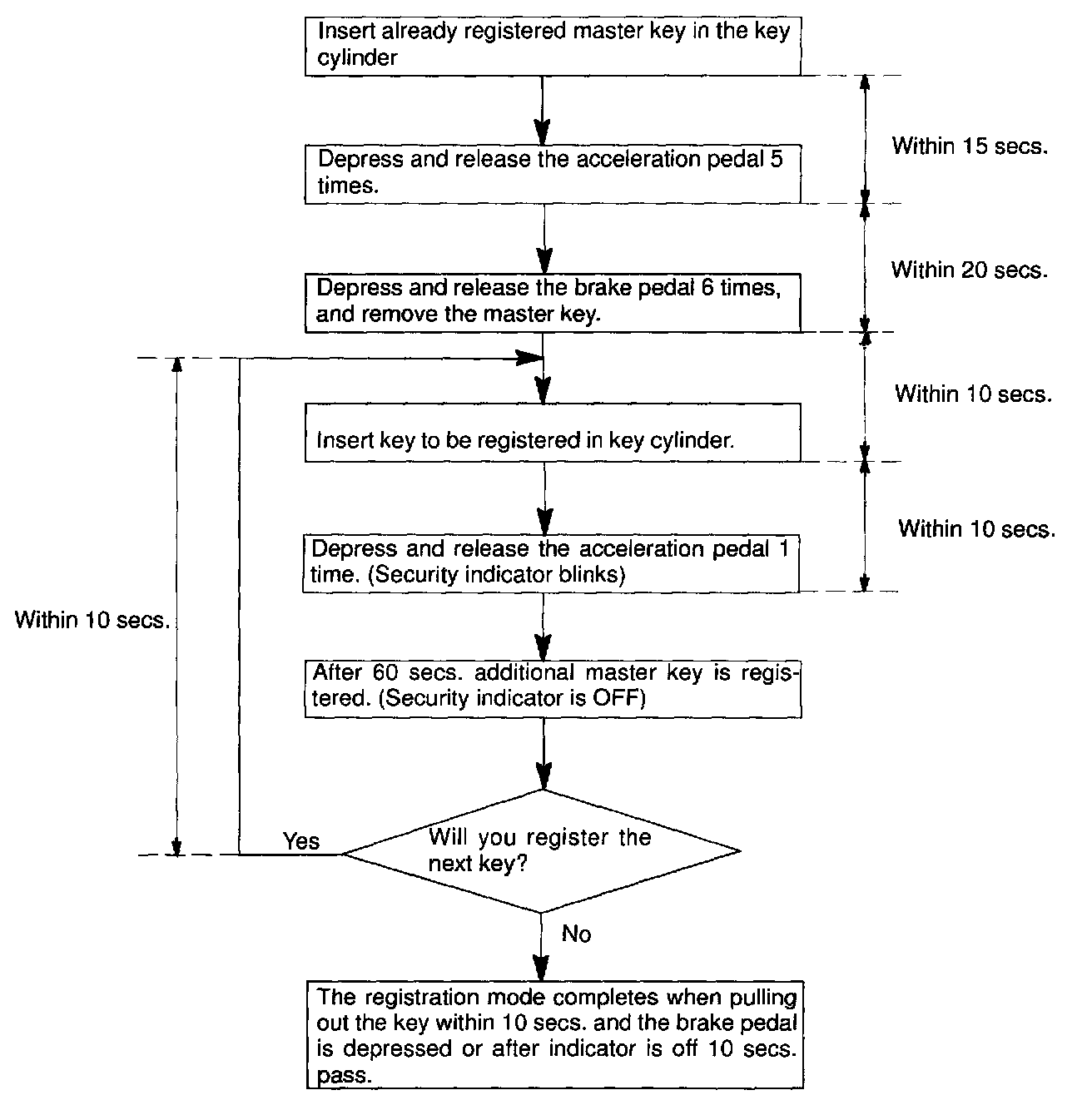There are 2 ways for registration of additional master key, one is depressing brake pedal and acceleration pedal and the other is using TOYOTA hand-held tester.