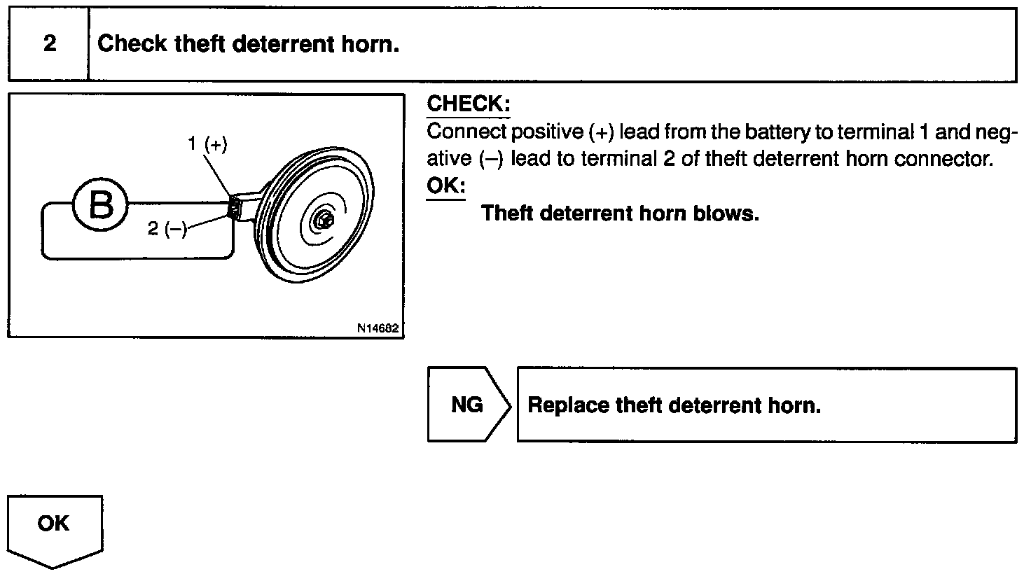 In this condition, if any of the following operations is done, the relay in the ECU turns OFF, thus stopping the theft deterrent horn from blowing: