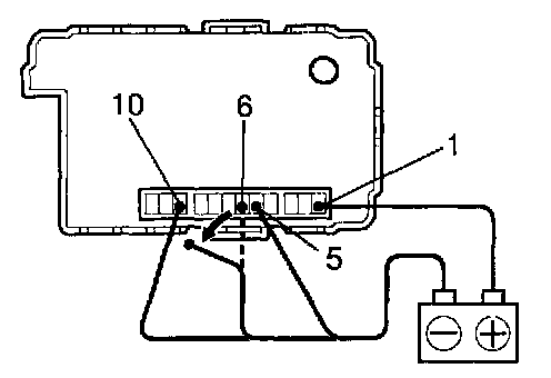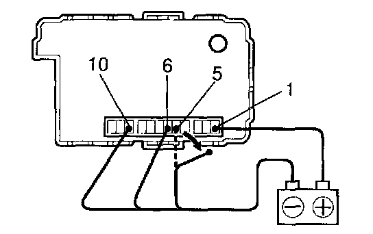 b. Connect the negative (-) lead from the battery to terminal 5, 6 and 10.