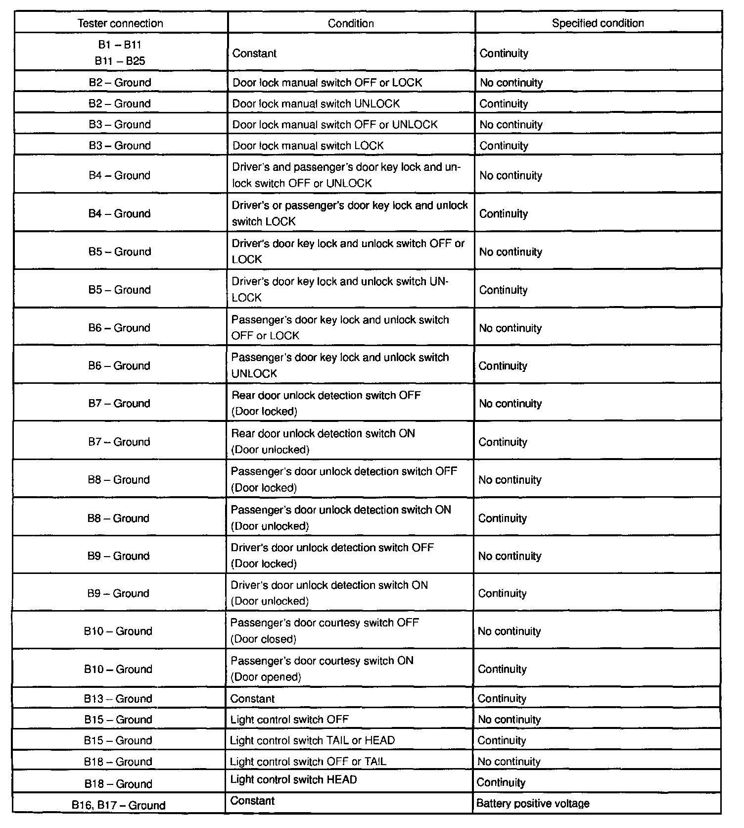 HINT: When the relay circuit is as specified, inspect the door lock signal.
